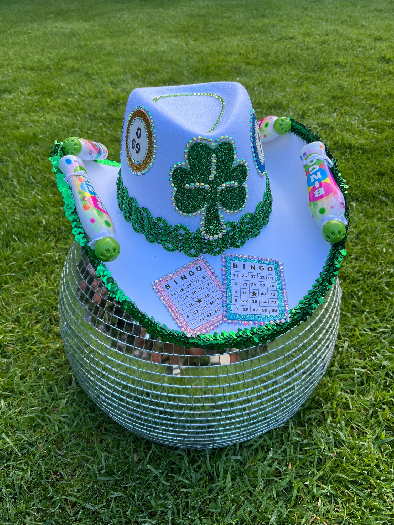I was given strict instructions which bingo balls to include (tactically chosen to include a range of sparkly colours). The commissions design details also stated to include bingo calling cards, a lucky shamrock and ... the dabbers (detachable and ready to use)!