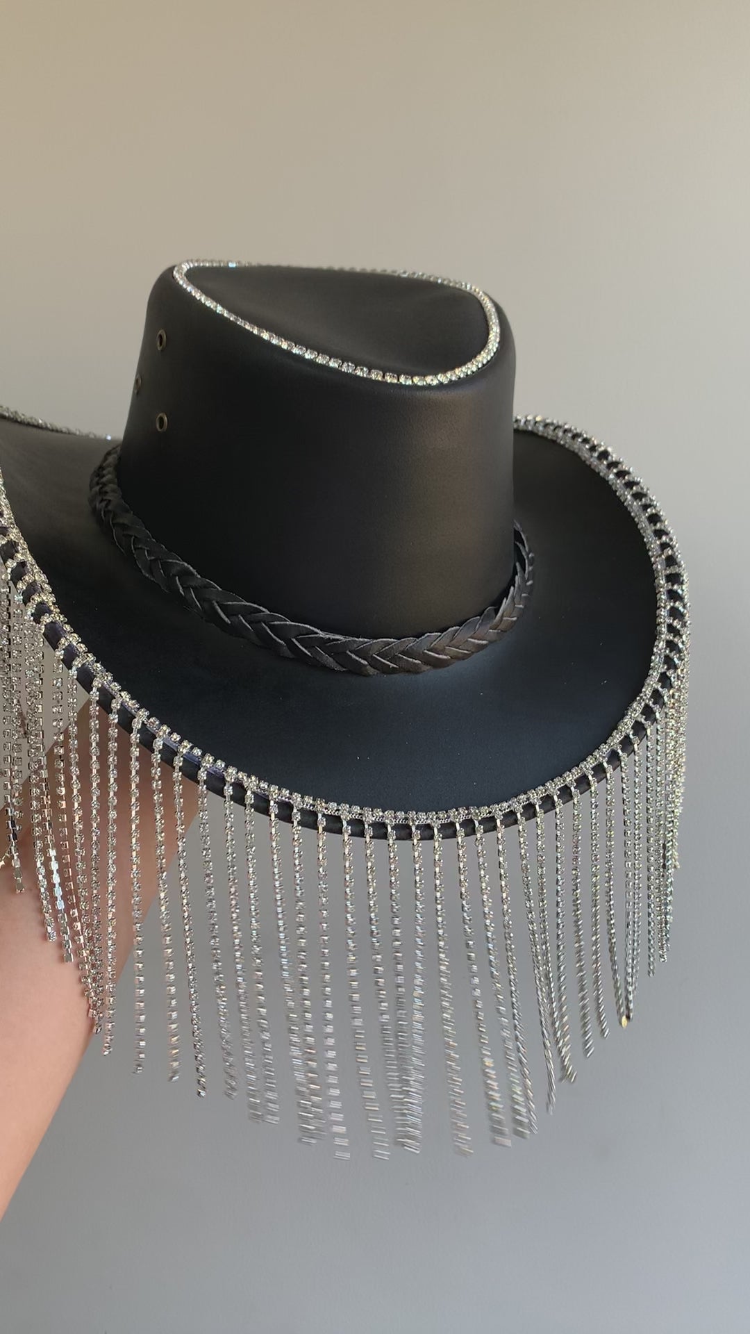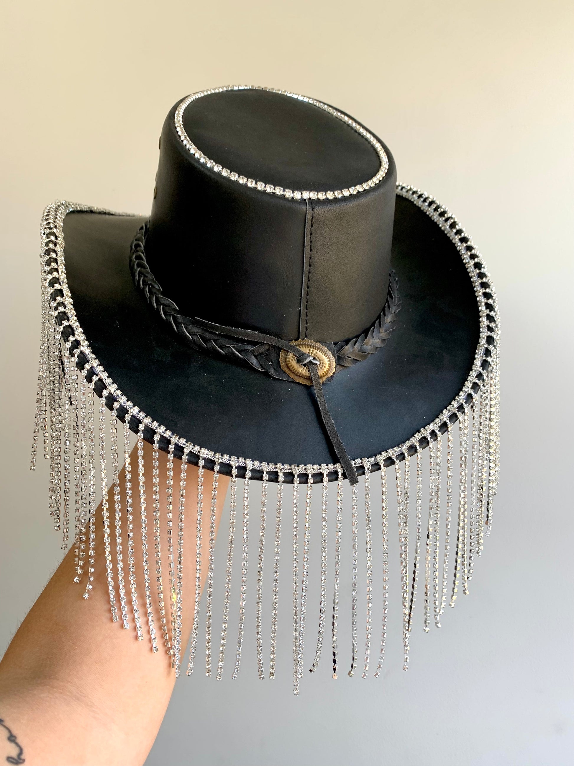 Genuine Leather Cowboy Hat with Rhinestone Fringe – For the Disco Dollies