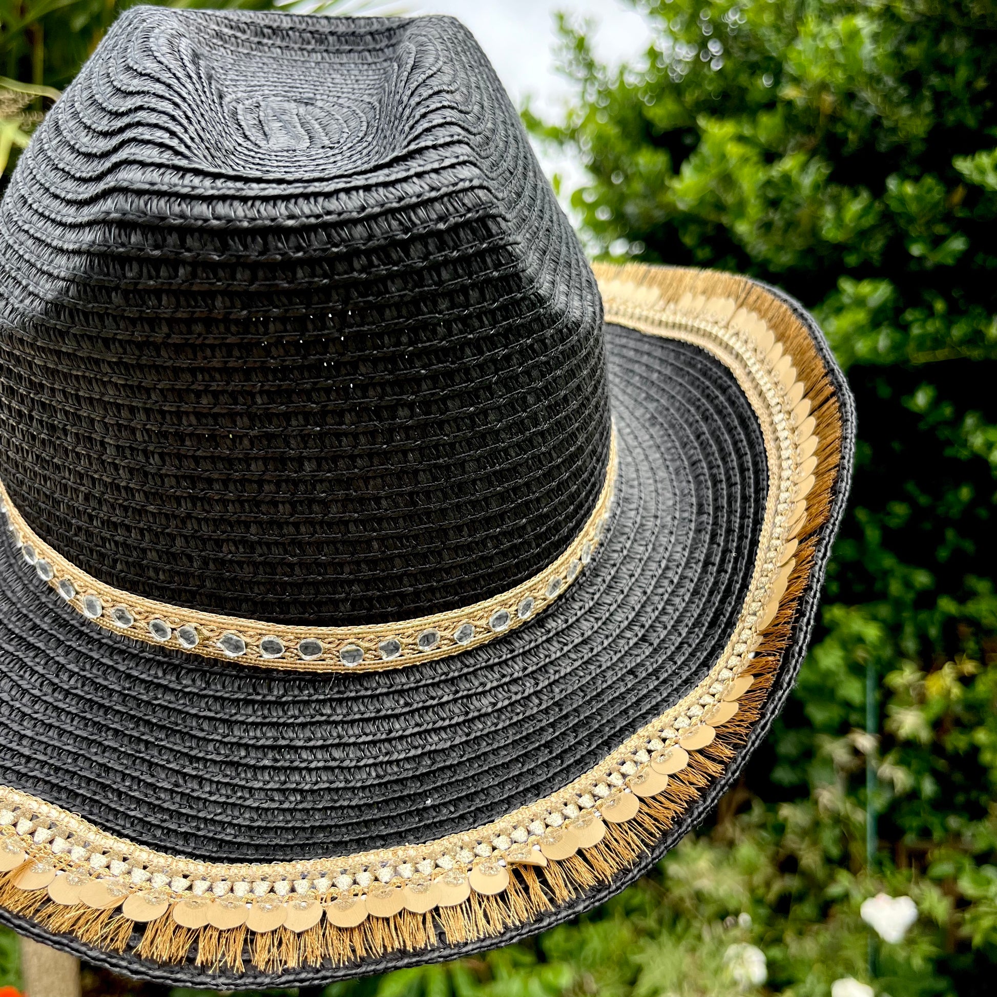 Woven Sun Hat with Embroidered Details & Mirror Accents