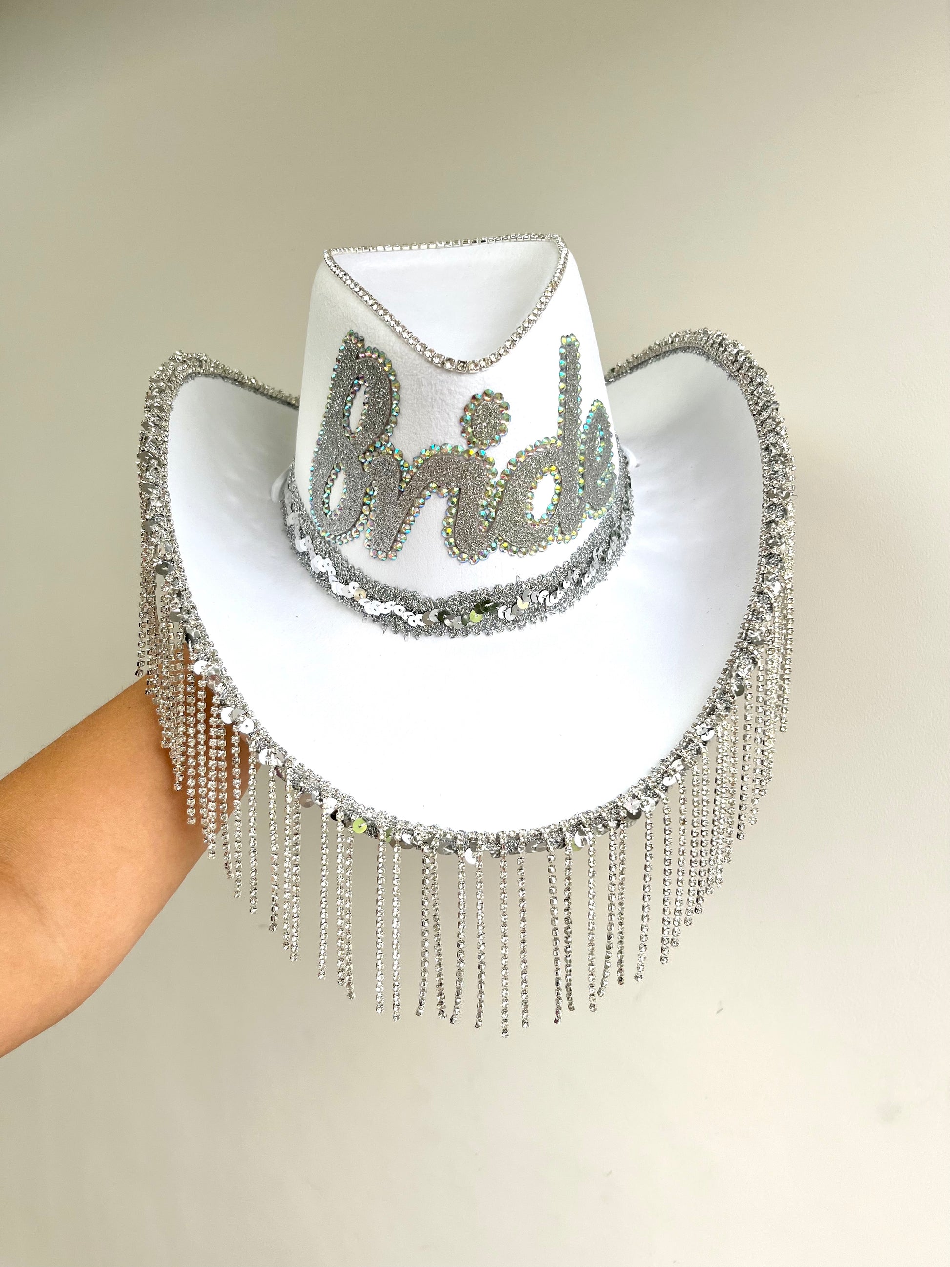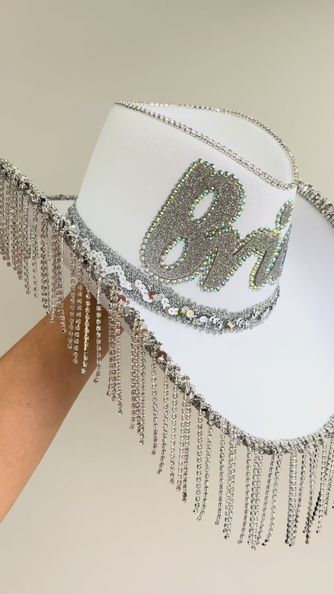 White 'Bride-to-Be' Cowboy Hat with Rhinestone Fringe