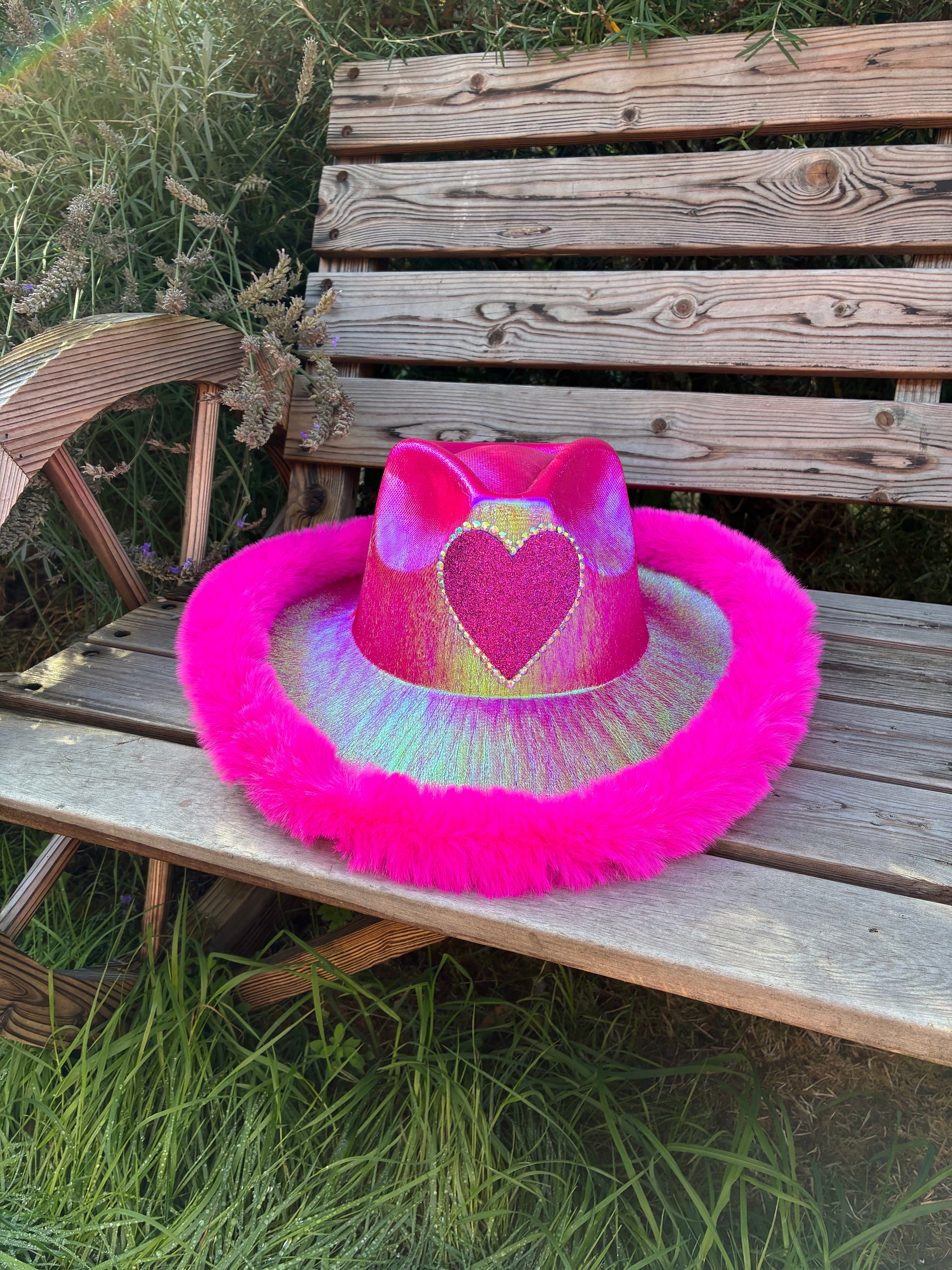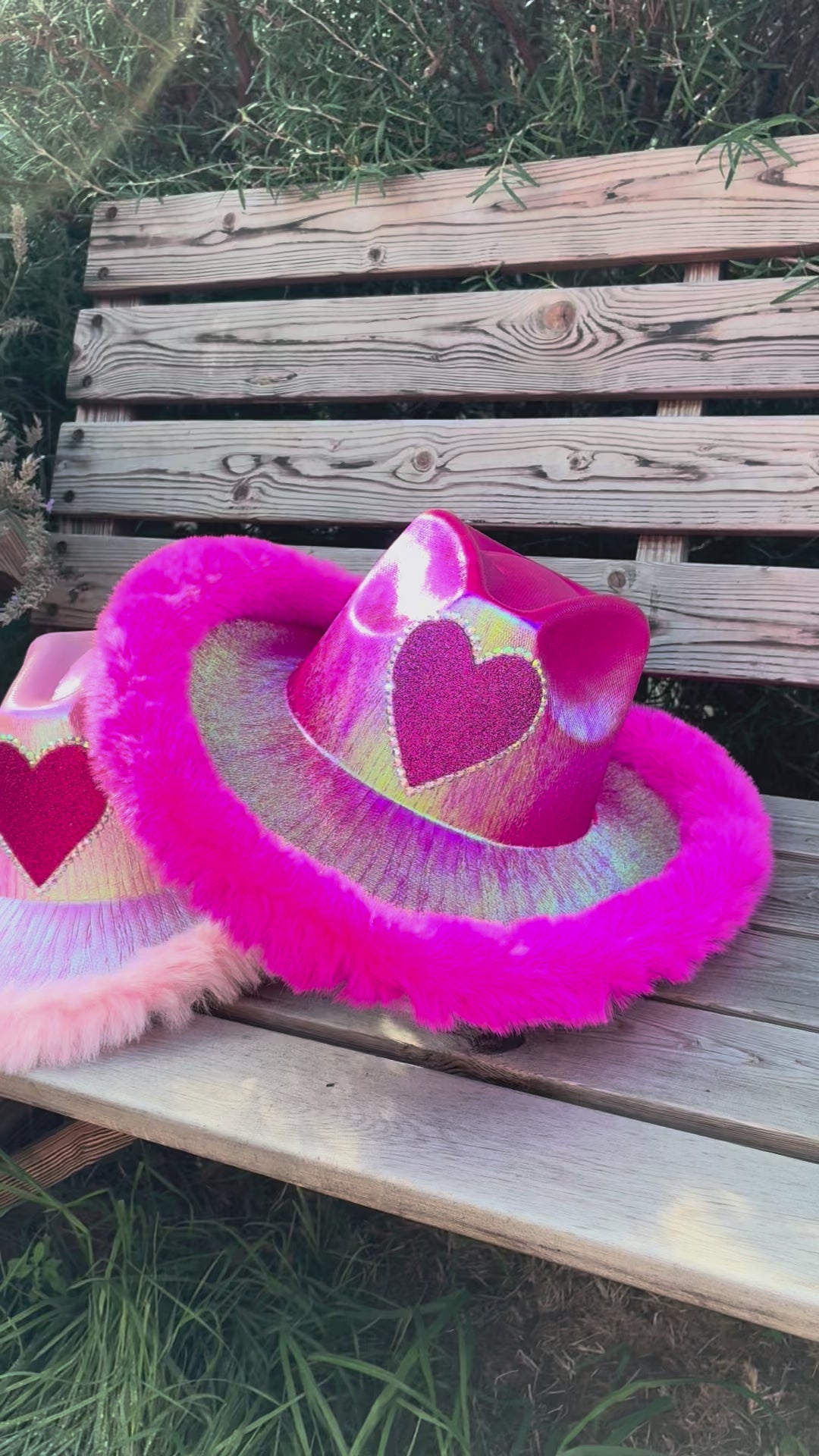 Hot Pink or Baby Pink Metallic Love Heart Cowboy Hats