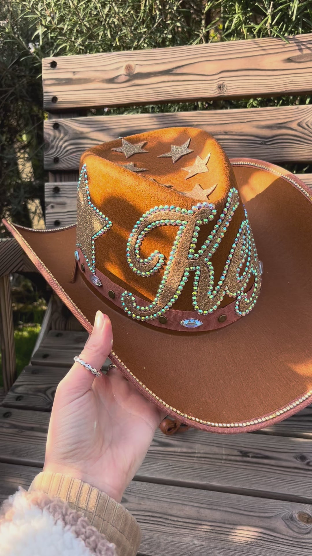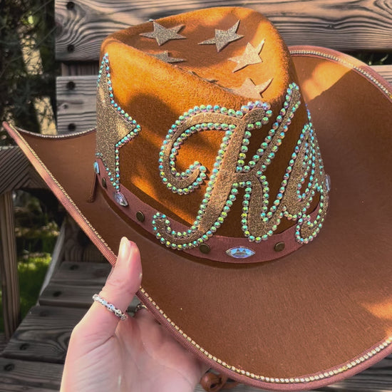 Brown Cowboy Hat with Rhinestone Embellishments