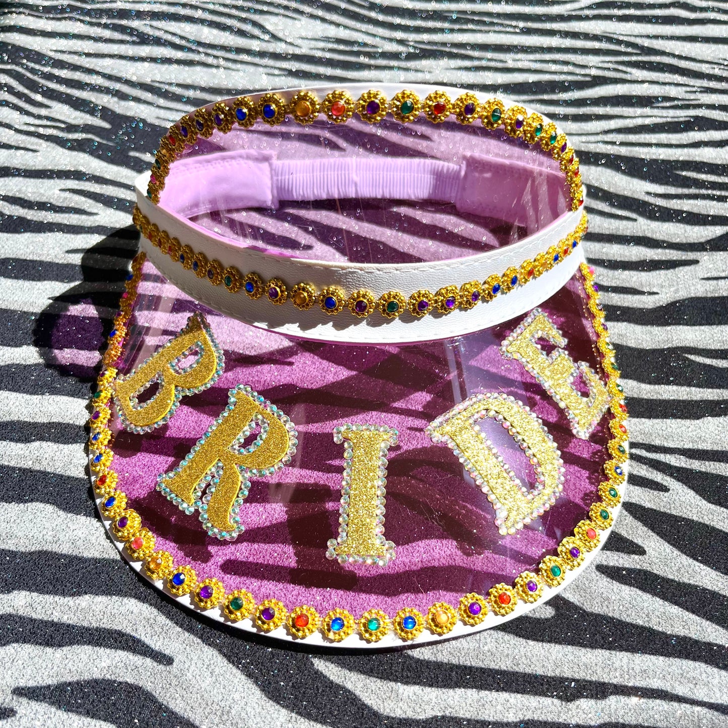 Bring the sparkle with this electric blue, hot pink or rainbow flag colours elasticated sun visor, adorned with shimmering rhinestones—glam meets sunshine!