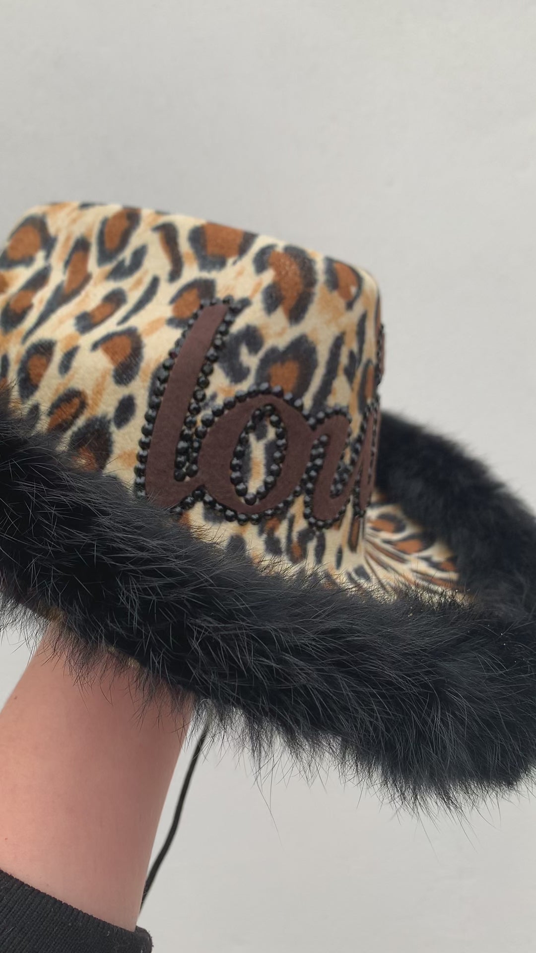 Personalised Fur Trim Leopard Print Cowboy Hat