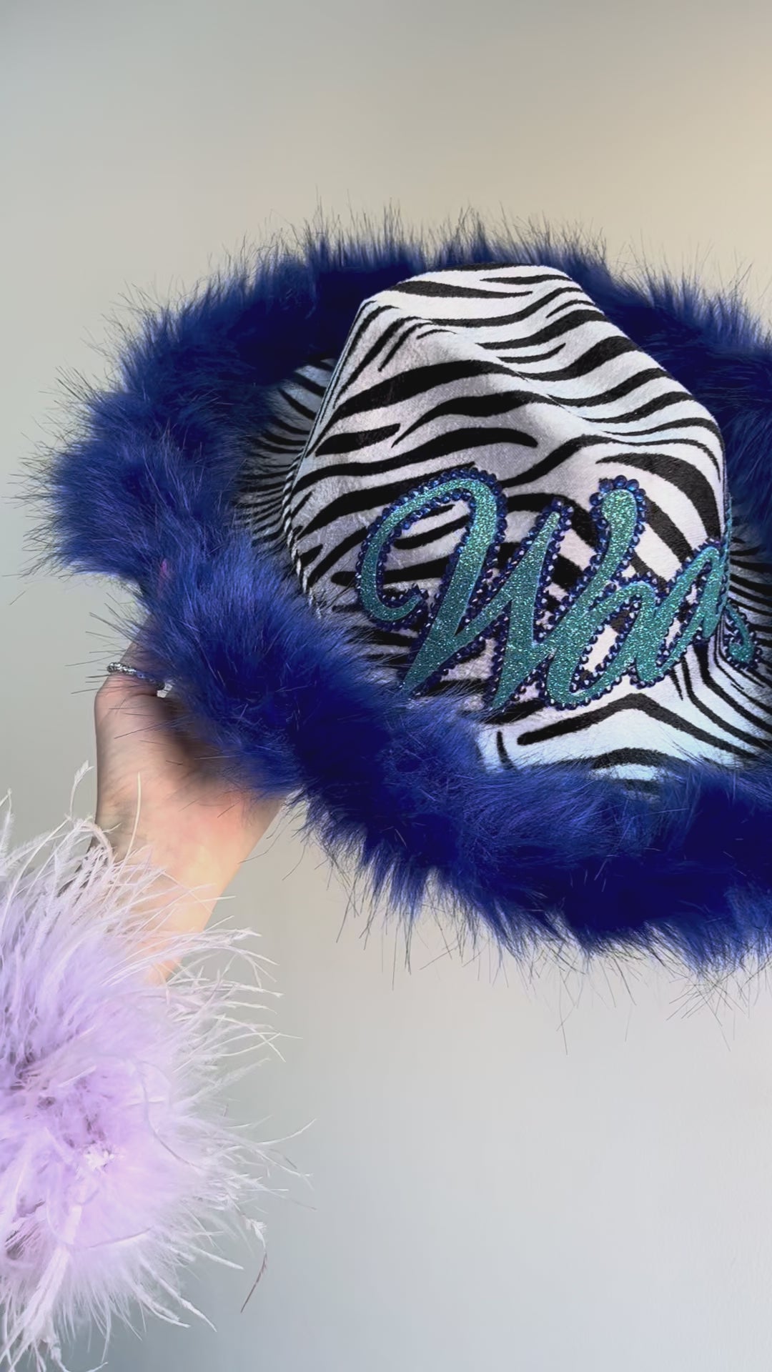 Personalised Fur Trim Zebra Print Cowboy Hat