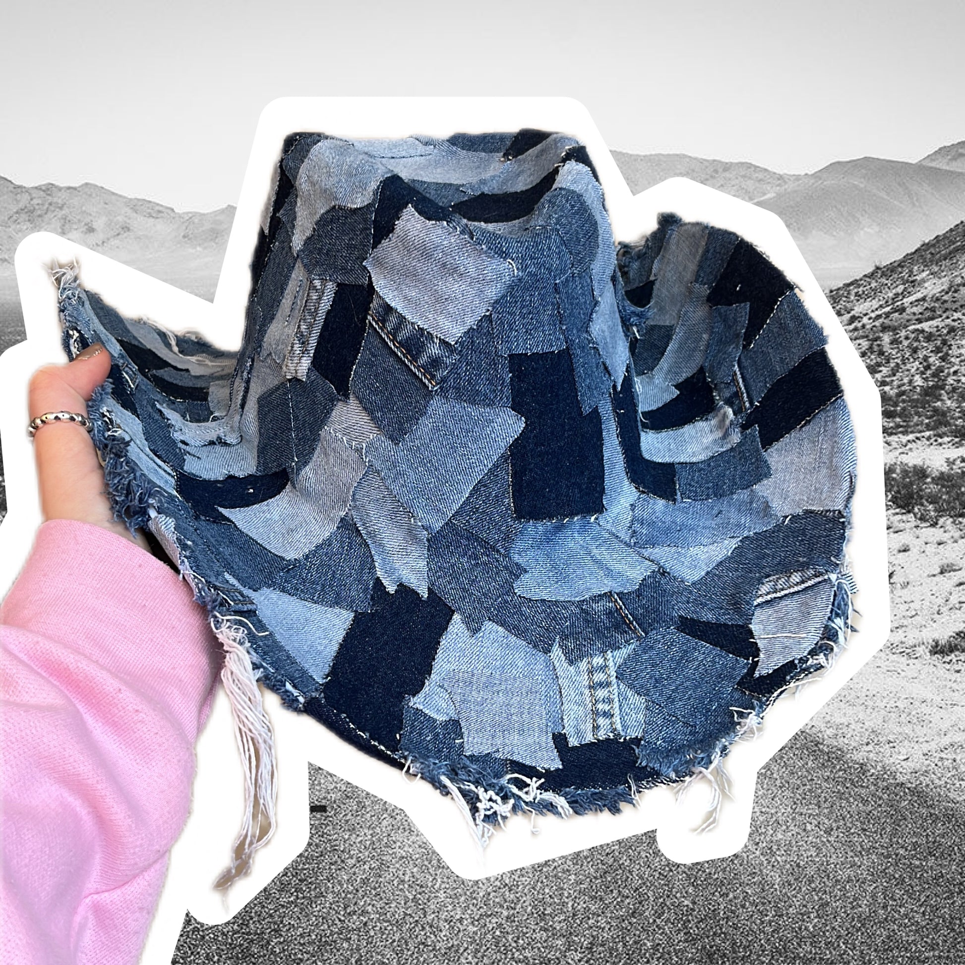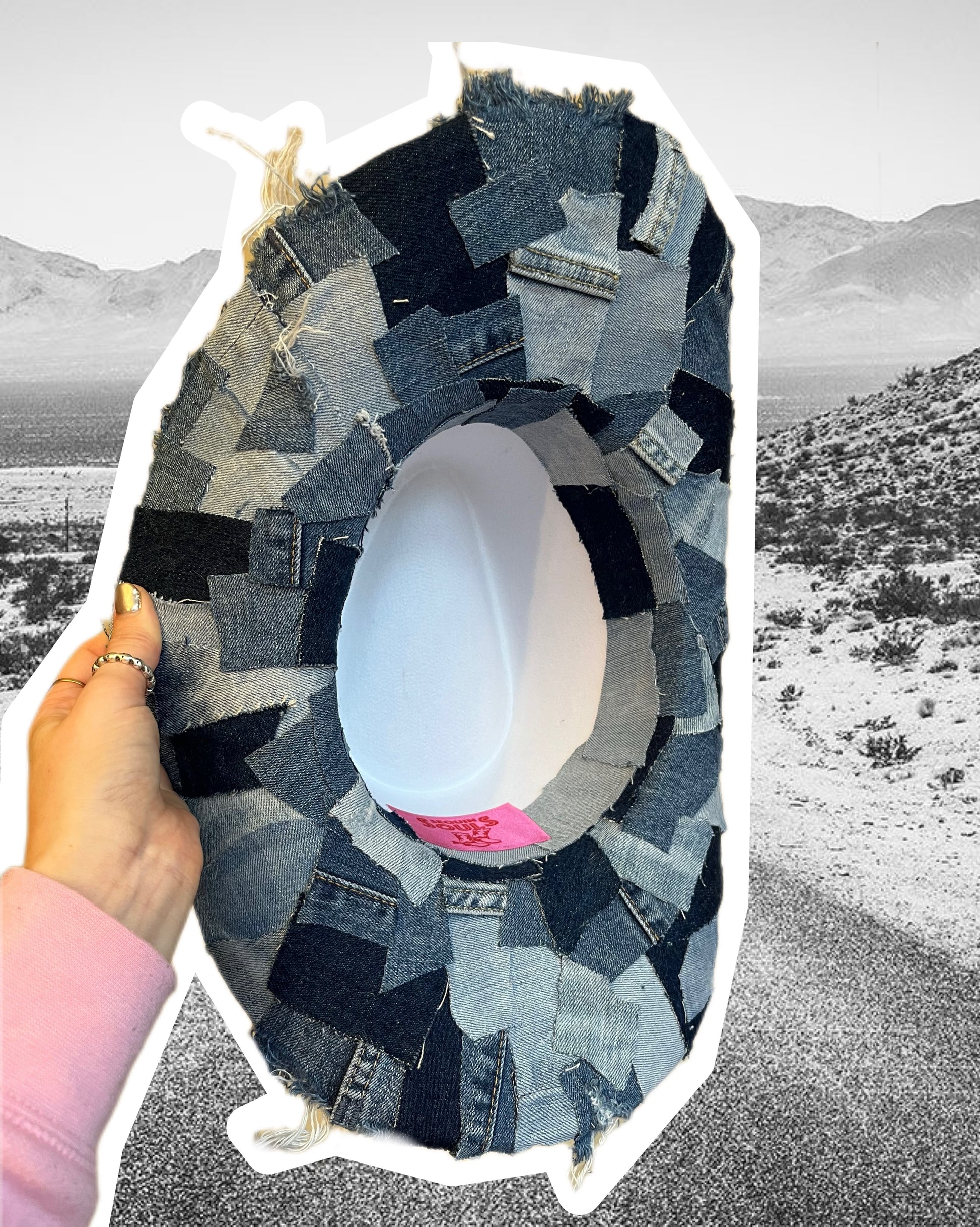 Bring the Y2K energy with this recycled denim cowboy hat – where shabby chic meets statement style.