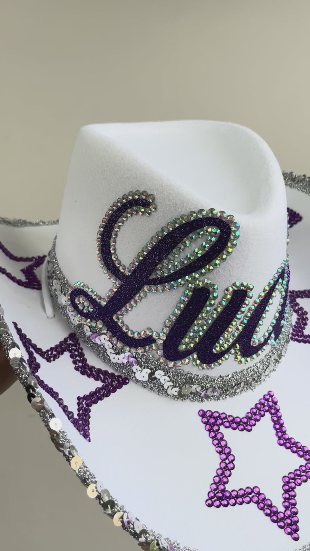Personalised Cowboy Hat with Purple Rhinestone Stars 💜✨
