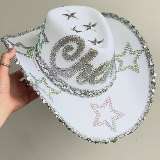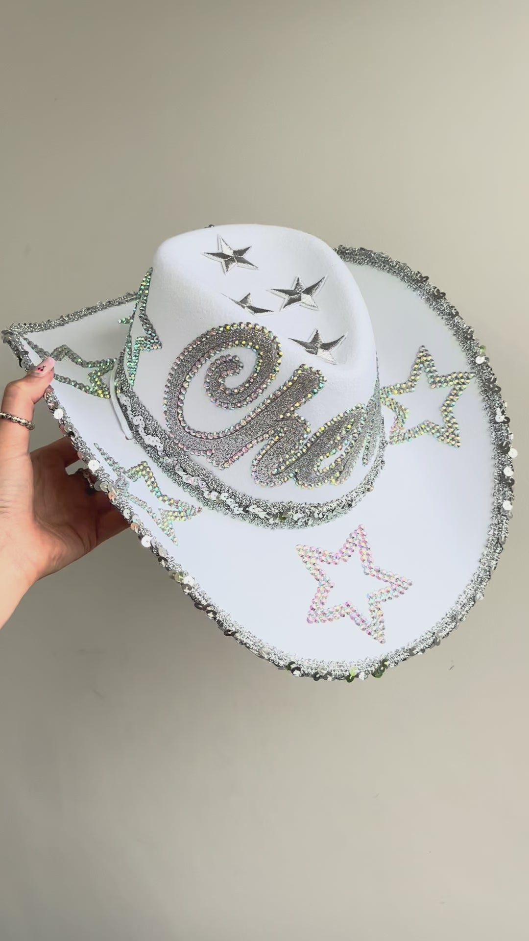 Personalised Cowboy Hat with Iridescent Star Rhinestones ✨