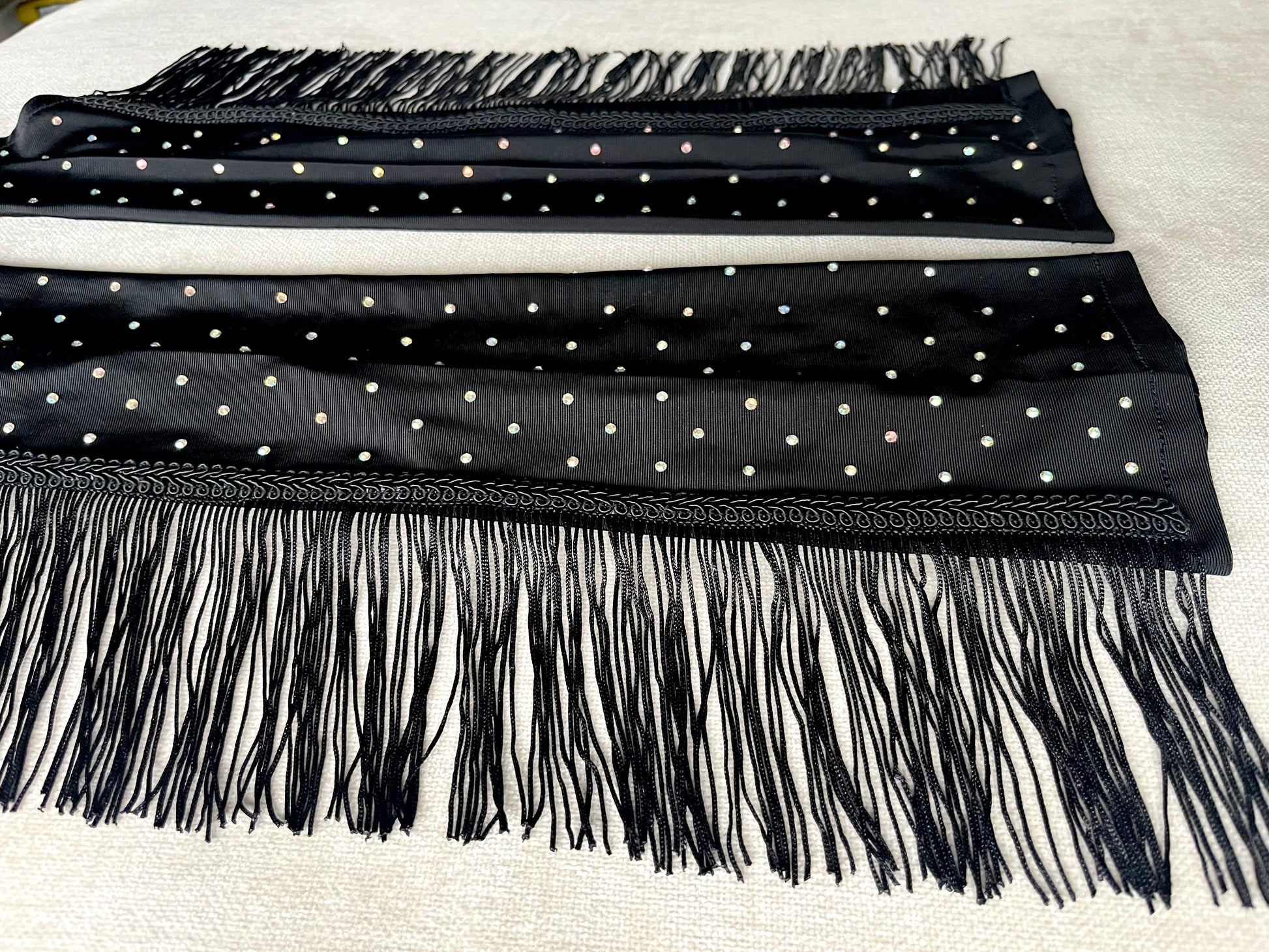 Black Stretch Satin Gloves with Rhinestones & Fringe – For Maximum Rodeo Drama 🖤✨