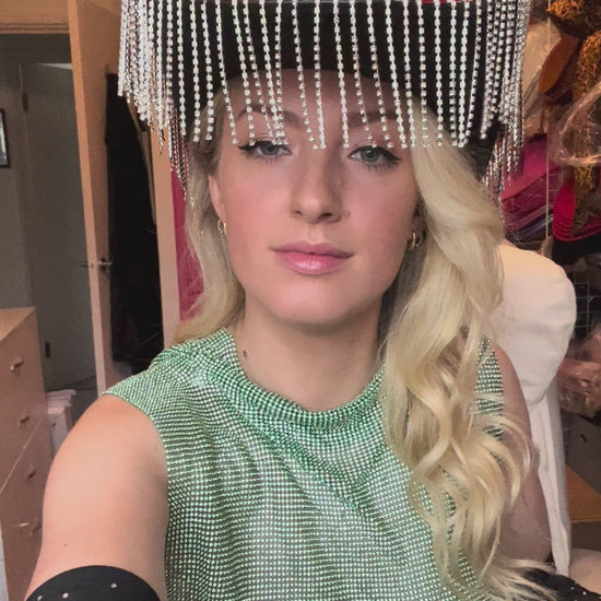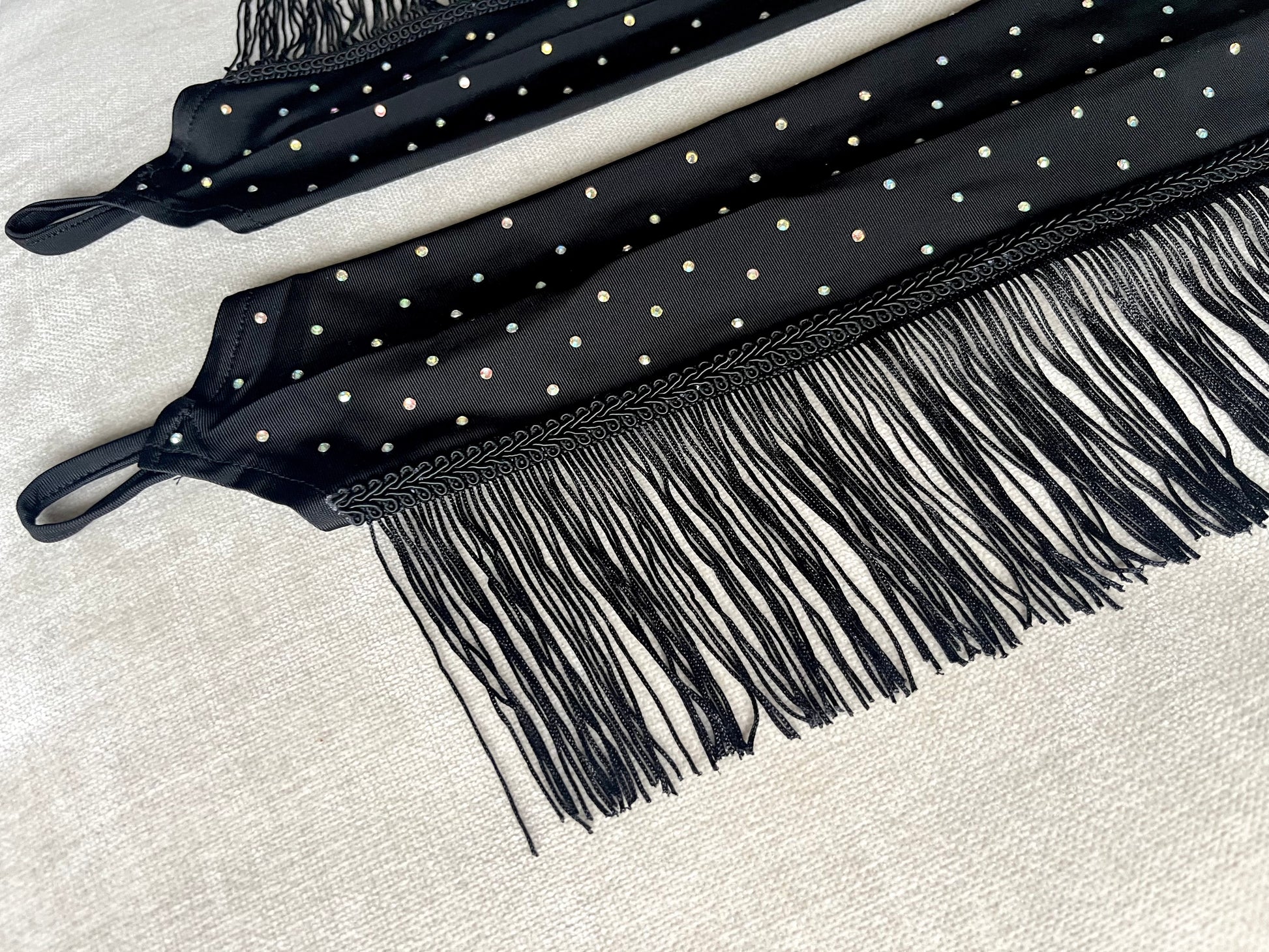 Embellished with sparkling rhinestones and fringe that sways with every move, these gloves are made for the bold, the glamorous, and the dangerously fun.