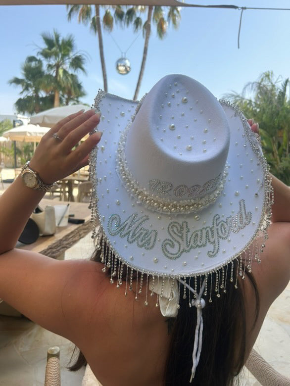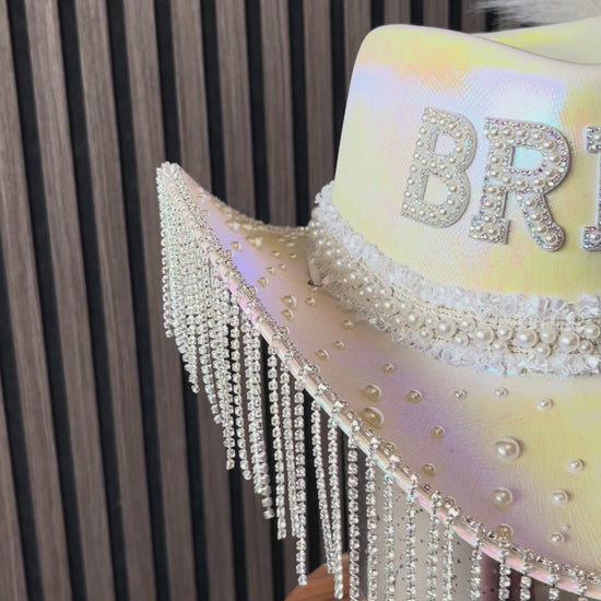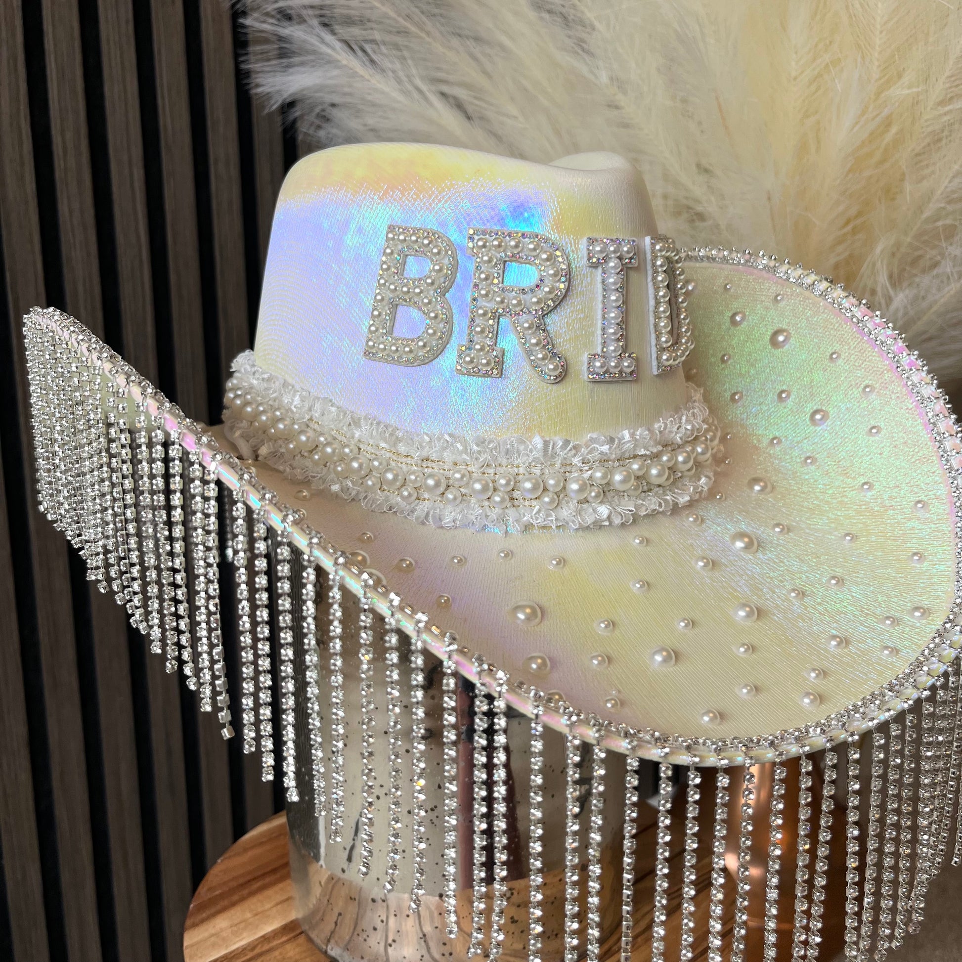 Rhinestone Fringe Pearl Bride Cowboy Hat