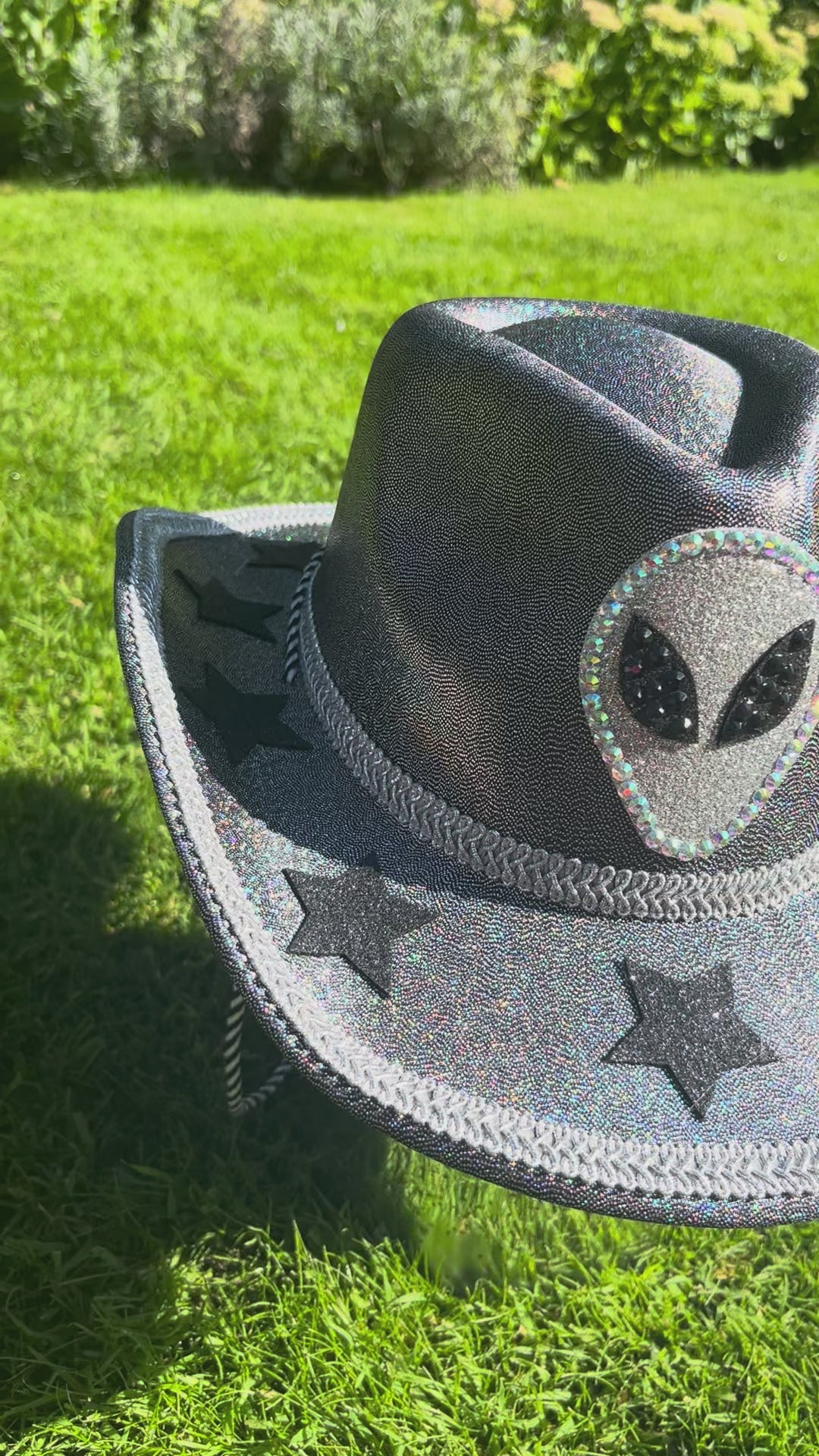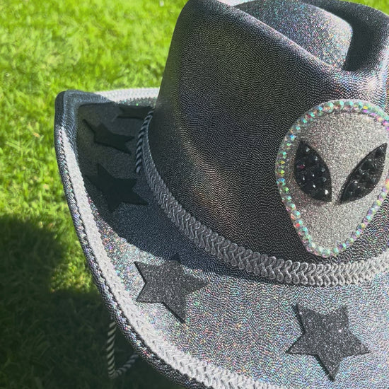 Adorned with sparkling rhinestone aliens and cosmic flair, it’s your statement piece for the galaxy and beyond.